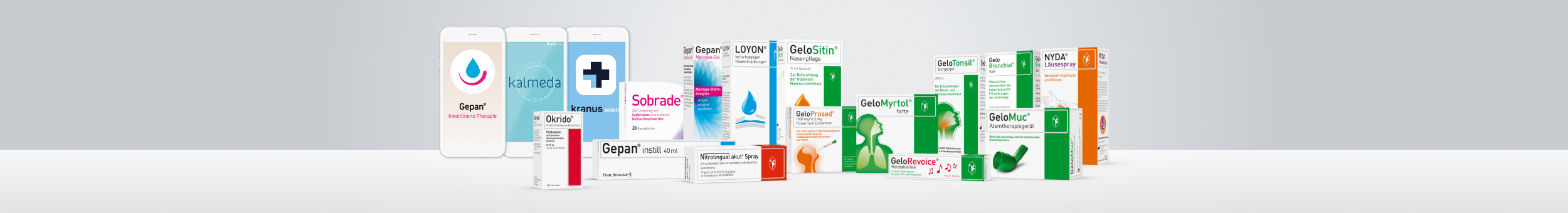 From moisturizing GeloSitin® nasal oil to treat excessive dryness in the nasal passages to GeloBronchial® cough suppressant syrup, which features a high dose of essential thyme fluid extract, GeloDurat® ointment and GeloDurat® inhaler or the GeloMuc® airway treatment device, the range includes effective products for the upper and lower respiratory tracts.
